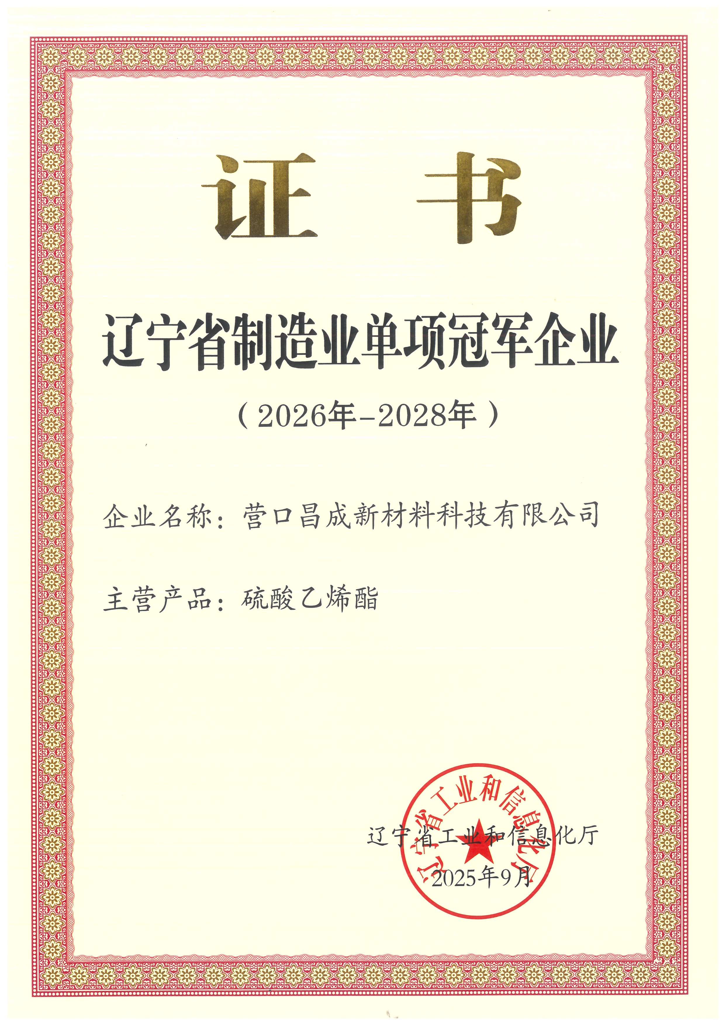 • 遼寧省制造業(yè)單項冠軍企業(yè)